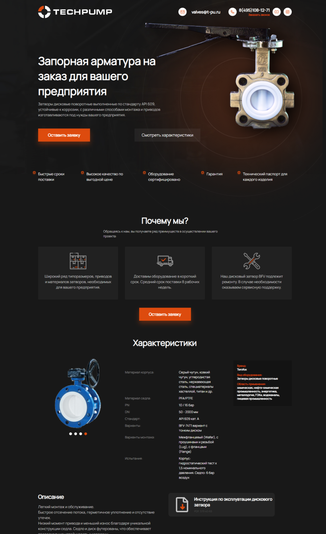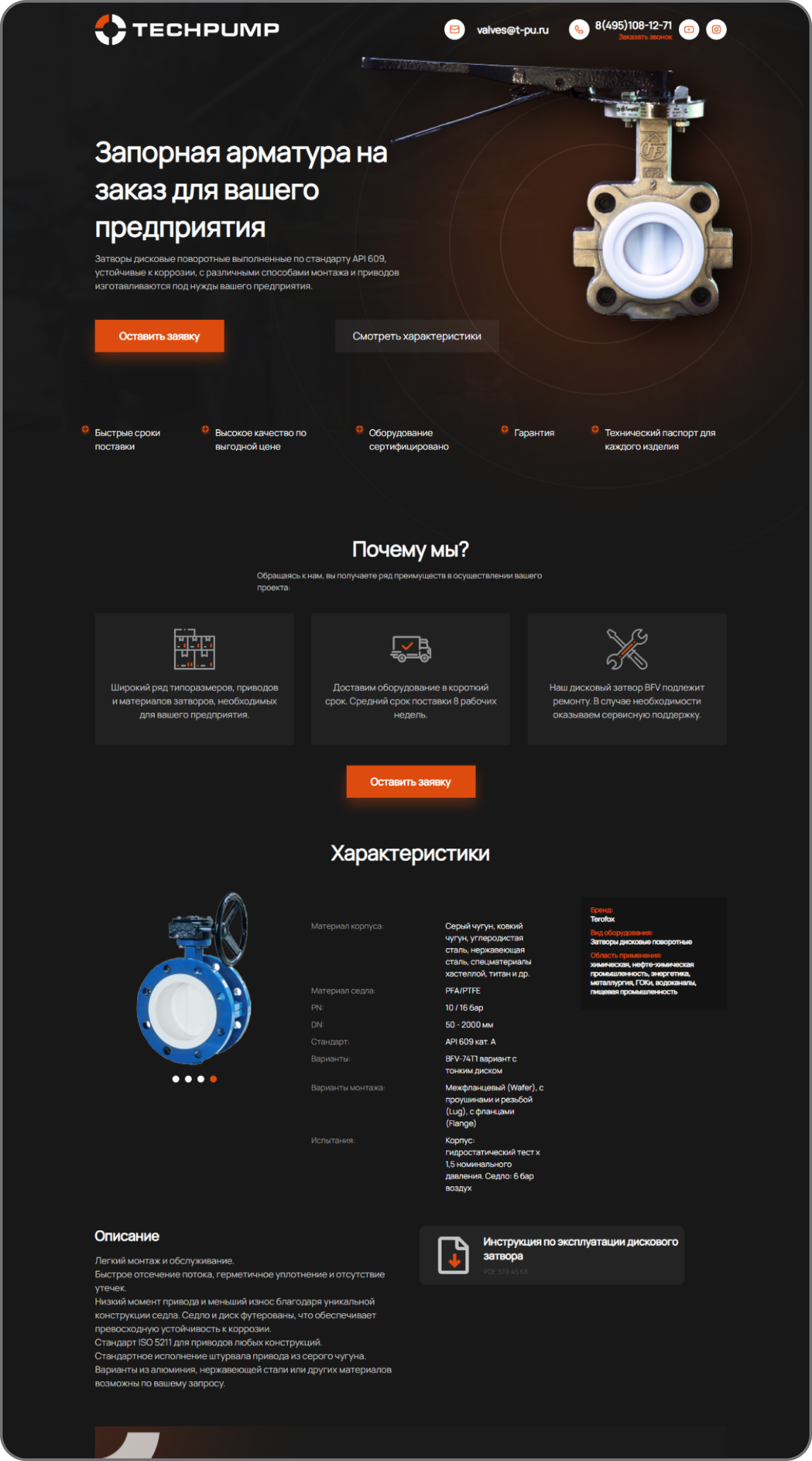Разработали сайт для компании, которая занимается производством запорных арматур для предприятий на заказ, для тестирования рекламной кампании